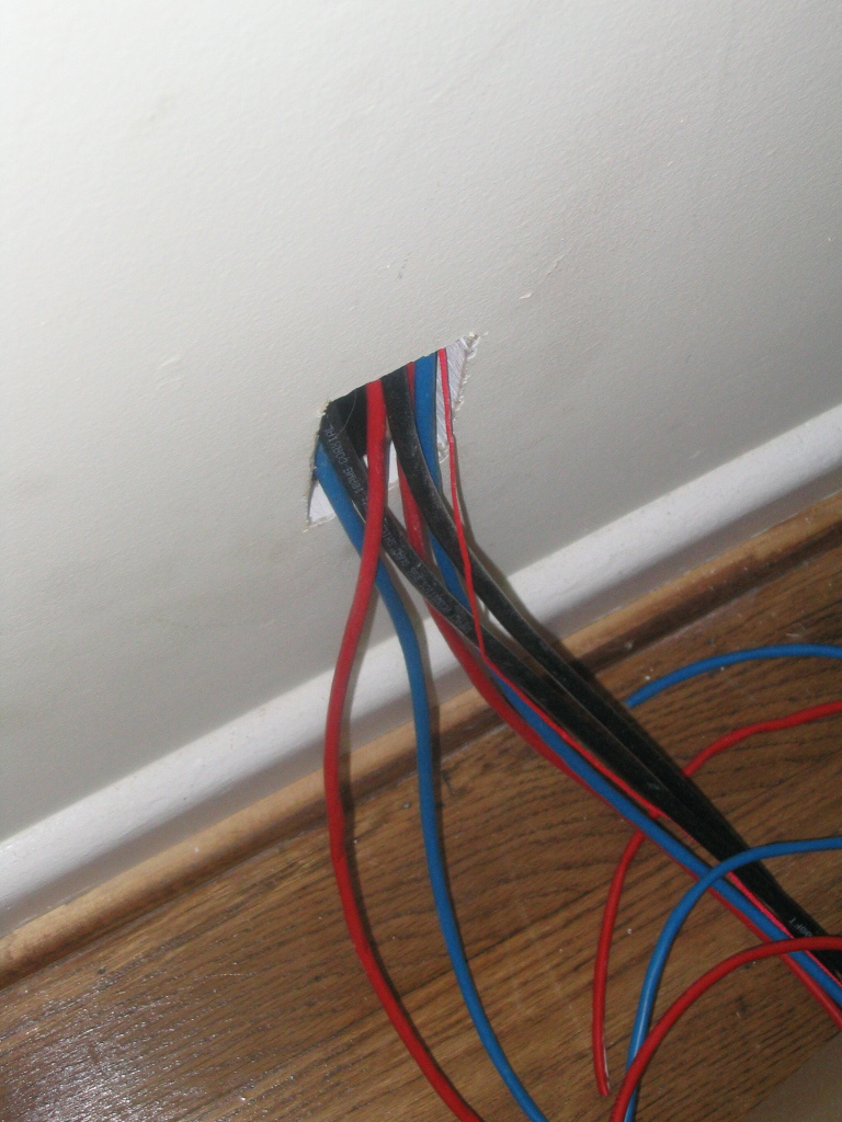 Drop in Yellow Rm. 2 sets of cables since one will go thru the other side of the wall to the Master BR.