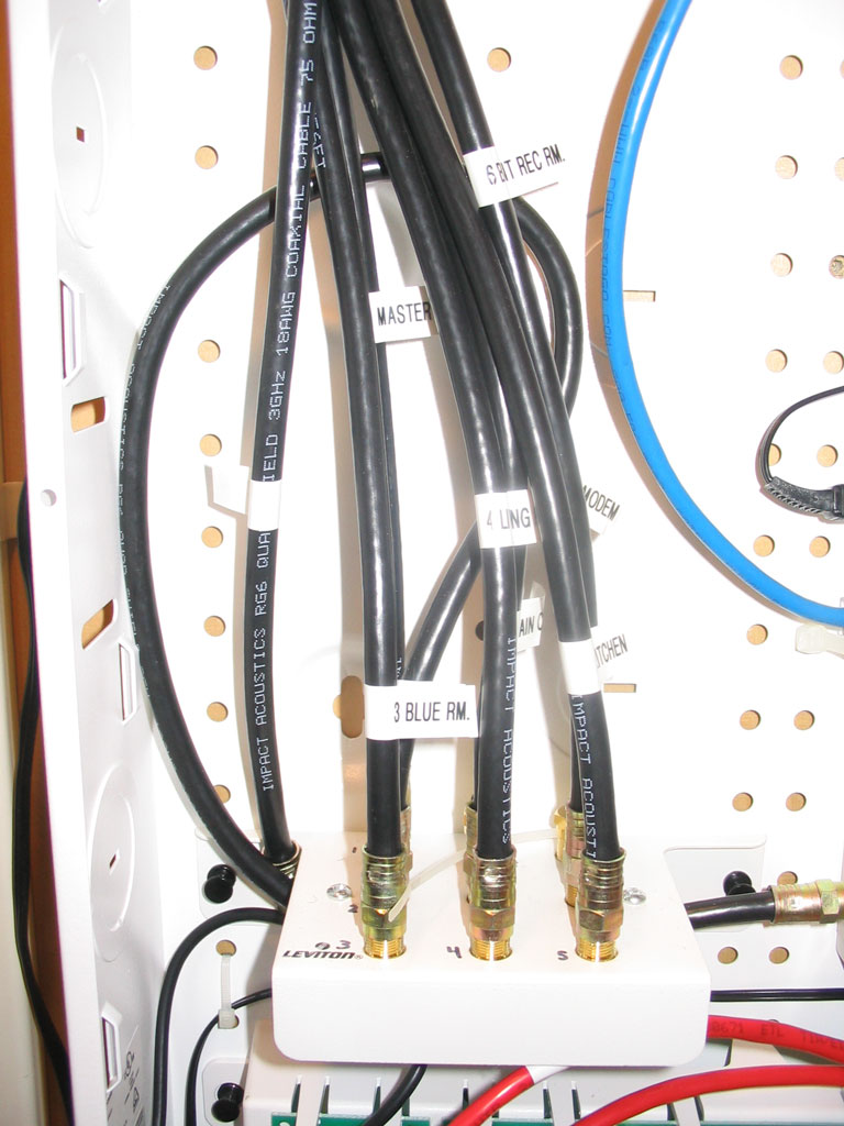 Closeup of Leviton Coax distribution module.