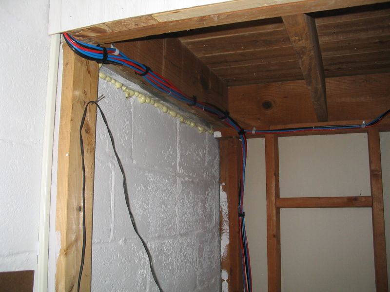 The added cables passing below the stairs on to the bsmt office & workshop.