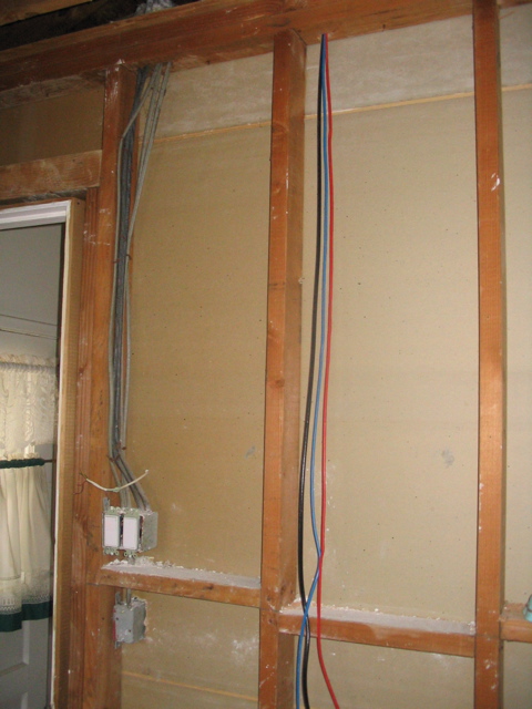 Wall along basement stairs. Network drop.
