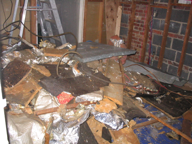 Description: I removed all of the old pressed fiberglass ductwork from the attic. This was for an old HVAC unit that used to reside at the far end of the house. Moving this stuff took all day and was dusty as hell.
