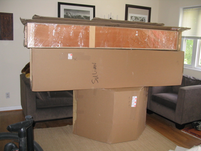 The new cabinets are here! And occupying a huge amount of space in our living room and blue room.