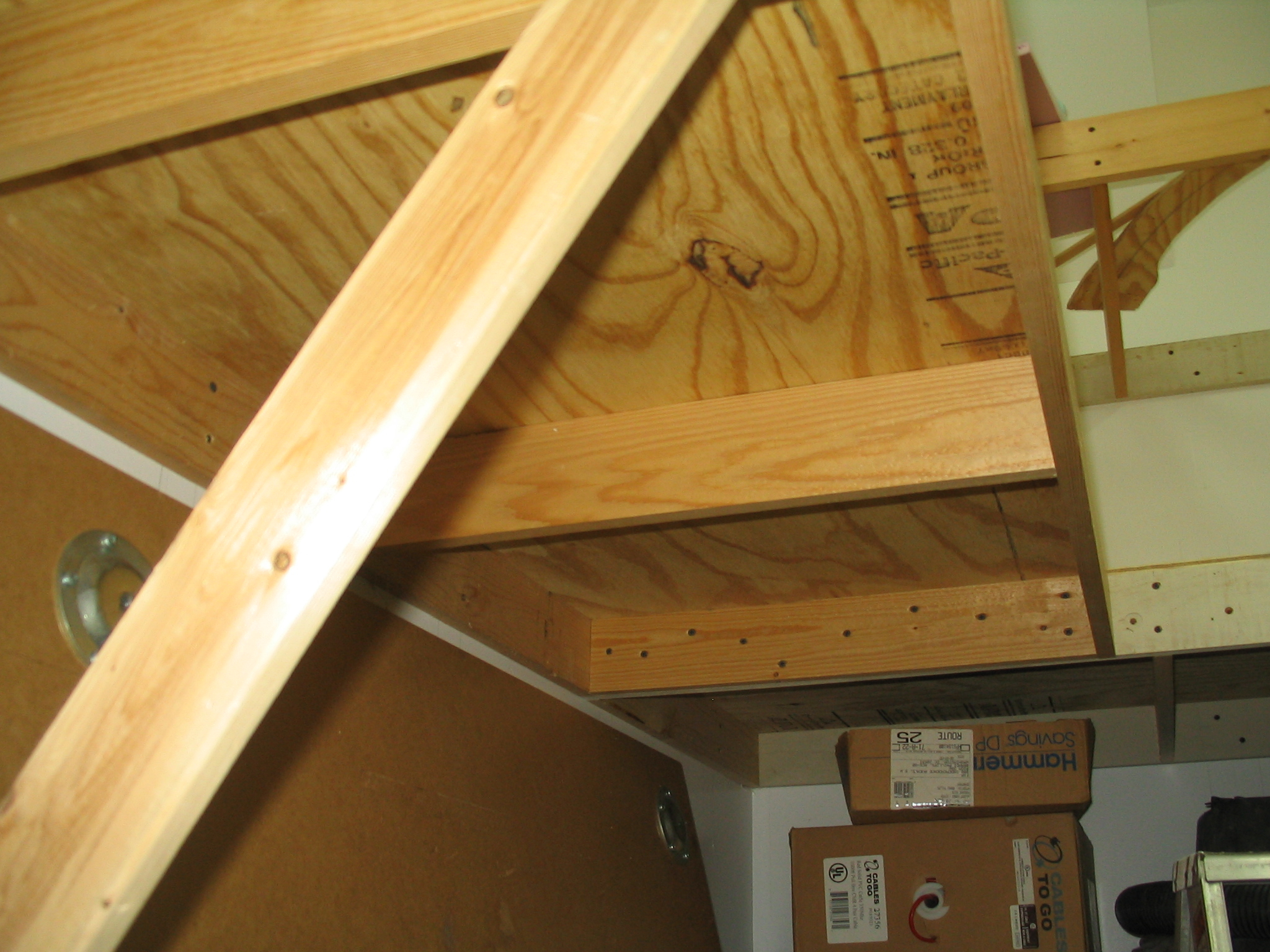 Beneath benchwork, lower level
